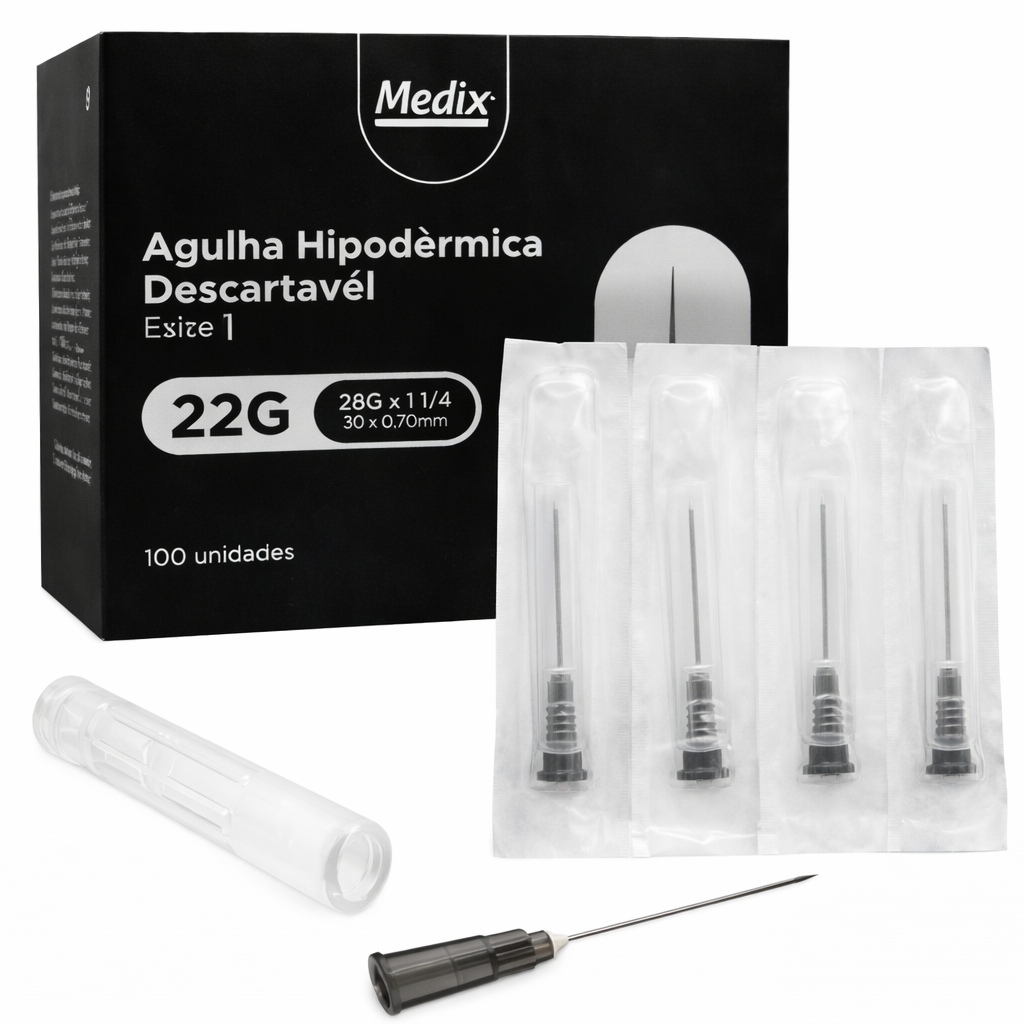 Dimensões: 30 mm de comprimento x 0,70 mm de diâmetro (Calibre 22G x 1 1/4").